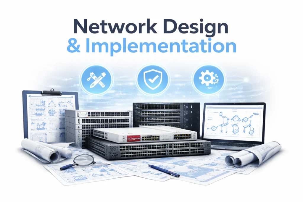 Our Network Design & Implementation service delivers a secure, scalable, and highly available network built to support business growth and reduce risk. We assess the current environment, design an optimized target architecture, and implement it with structured change control, validation, and rollback planning to minimize downtime. The engagement concludes with complete documentation and knowledge transfer to ensure smooth operations and long-term maintainability.